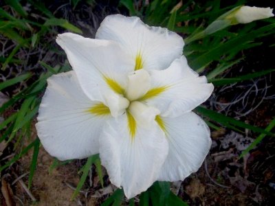 • Description: A crisp ruffled self white blossum with a gold signal.